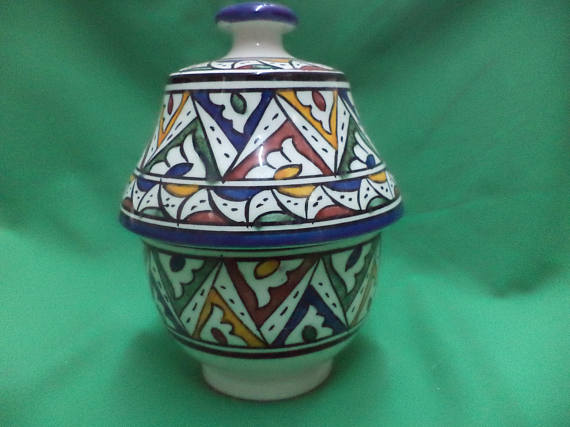 Handcrafted Moroccan Ceramic Jar Geometric Polychrome, Moroccan Pottery