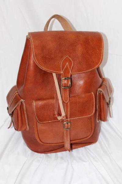 Moroccan leather Backpack, Brown leather Vintage Style Moroccan Hand-made Genuine Leather Backpack in Tan |
