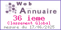 Afficher sur votre site votre position dans Annuaire Web France et booster votre classement, chaque visiteur unique sur votre site vous rapportant un point suppléméntaire, vous montez ainsi rapidement dans le classement global et par catégorie. En cliquant sur l'image le visiteur sera redirigé vers la catégorie de l'annuaire de votre classement. Votre compteur de point est mis a jour environ toutes les 30 minutes.