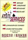 Atouts Services Vous propose une gamme complète de services sur Tarbes et ses environs : Ménage, repassage, livraison de courses à domicile, cours particuliers, bricolage et jardinage.