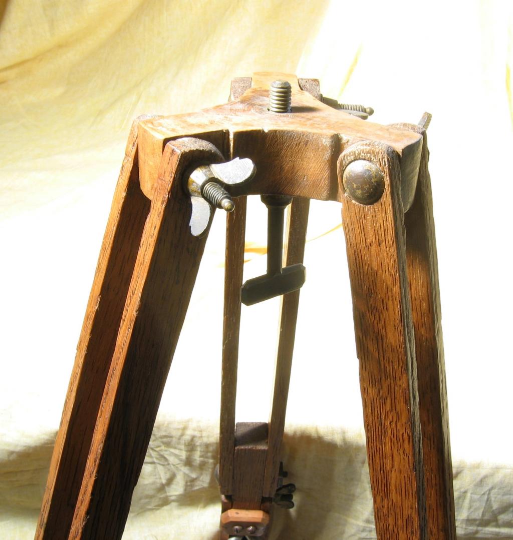 Pied pour chambre en bois de chêne, ferrures en laiton, trois brins pliants et coulissants, serrage par papillon