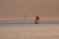 Royan phare de Cordouan couché de soleil avec une voile. |