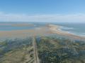 Royan vue depuis le phare de Cordouan. En 1ier plan le banc de sable qui constitue la nouvelle ile, formée par les tempêtes locales. |